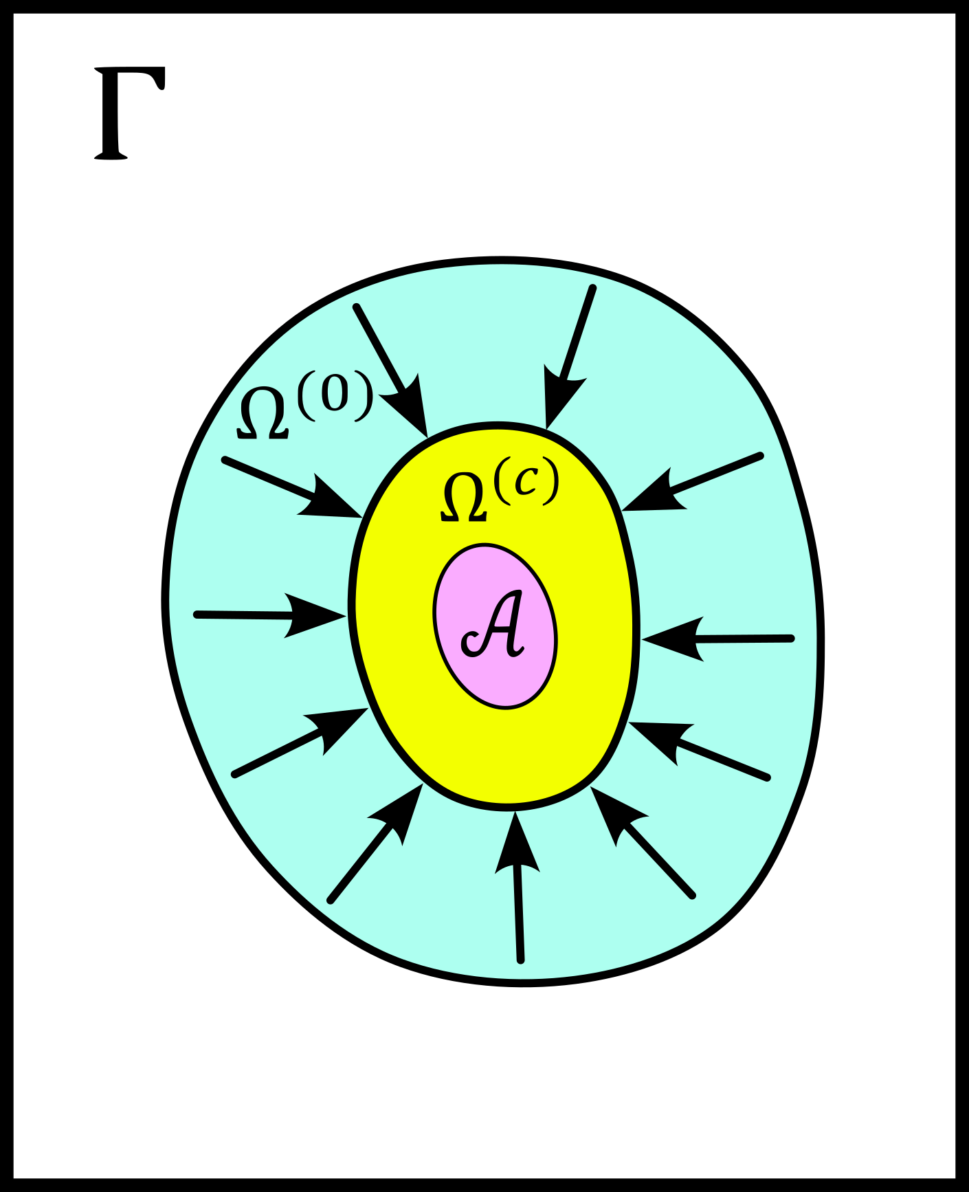 We describe then the iteration process as a contraction of \(\Omega^{(0)}\) by iterating on it the map \(\Phi\) until \(\Phi^{(c)}(\Omega^{(0)}; \ \theta)\) becomes sufficiently close to \(\mathcal{A}\).